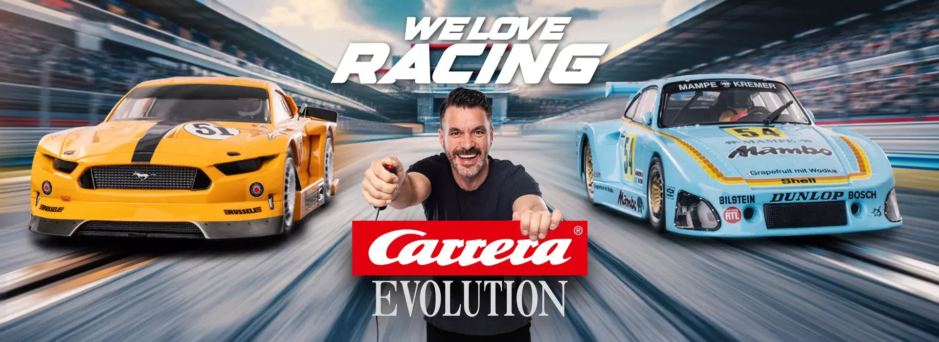 Check out our selection of Carrera Evolution 1/32 scale slot cars. Carrera Evolution cars can run on any 1/32 scale track, with the included universal guide keel helping on smaller track like Scalextric. They can also be easily upgraded to Carrera Digital 132 with the installation of the Carrera Digital Decoder.