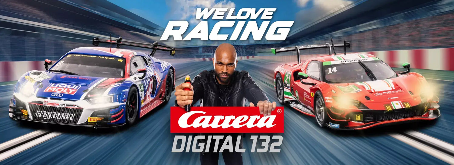 The Carrera Digital 132 line are high quality 1/32 scale digital slot cars, with a wide variety of models representing cars from the past to present. Carrera Digital supports racing up to six cars at once with the ability to perform lane changes and pit stops, as well as customize your cars performance characteristics.